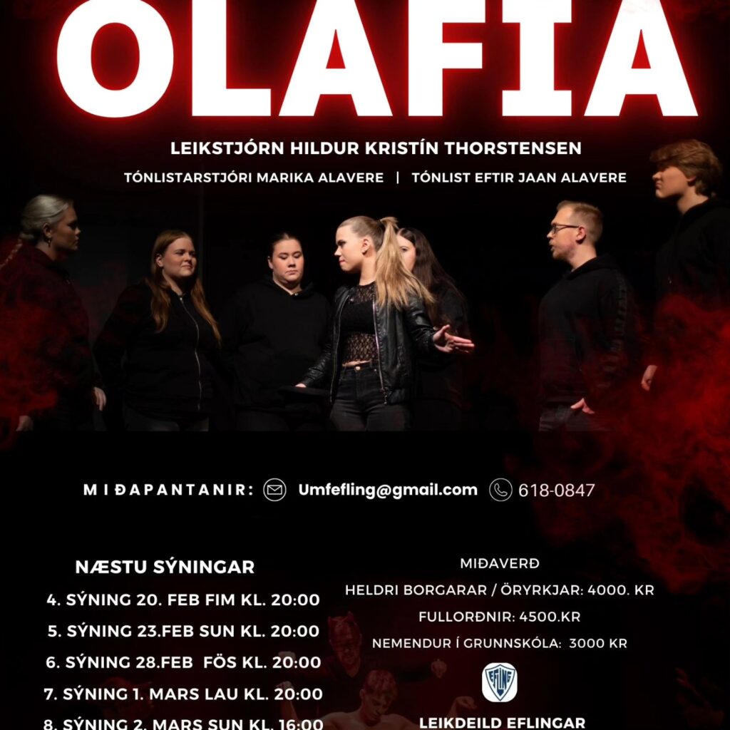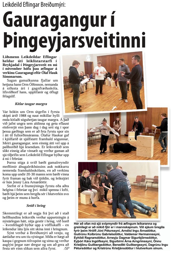 Nemendur hafa tekið að sér að búa til bæklinga og auglýsingar fyrir leikfélagið. Hér má sjá auglýsingu fyrir Þrek og tár sem frumsýnt verður 13. febrúar næstkomandi.