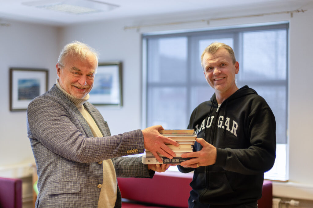 Fimmtudaginn 9. Apríl kom rithöfundurinn og fjölmiðlamaðurinn Björn Jónas Þorláksson frá Vogum úr Mývatnssveit fyrrverandi nemandi skólans og færði bókasafni skólans að gjöf eitt eintak af öllum þeim bókum sem hann hefur skrifað, átta talsins. Sögur af veru Björns í Laugaskóla koma fyrir í a.m.k. einni bókinni. Það var Birna Björnsdóttir bókasafnskennari sem setti sig í sambandi við Björn og þannig kviknaði þessi hugmynd. Sigurbjörn Árni Arngrímsson skólameistari veitti bókunum viðtöku og þakkaði Birni fyrir höfðinglega gjöf. Bókunum hefur verið stillt upp á bókasafninu og eru þær til útláns.